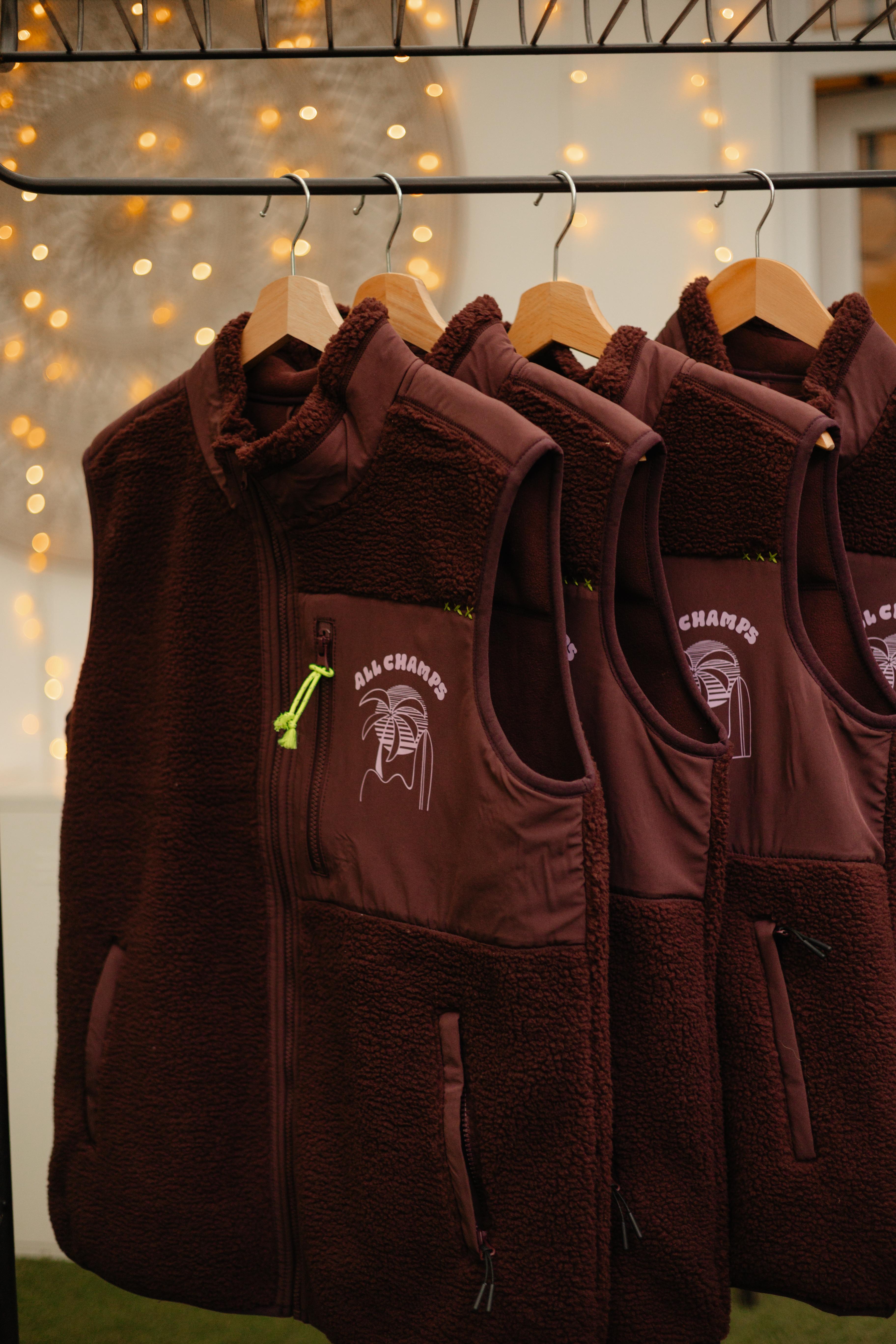Superbe polaire sans manche marron bordeaux. Impression à Genève par l'atelier Siblings. Détails faits main: surpiqûres & cordon fermeture . Pièce unique et en série limitée. Plusieurs tailles possibles, coupe loose, convient à toutes les shapes ! Il faut compter trois semaines de production à compter du 14 novembre 2025 .Le retrait de la polaire se fait directement au studio, tous les détails (horaires d'ouverture) sont indiqués dans le mail de confirmation. N'hésitez pas à nous contacter pour plus d'informations. COMPOSITION Shell: Bonded, Sherpa, 100 % polyester recyclé, Tissu lavé, Brushed Lining: Polar Fleece, 100% Polyester - Recycled, Brushed INSTRUCTIONS D'ENTRETIEN Laver avec des couleurs similaires, ne pas repasser sur l’imprimé, laver et repasser à l’envers.
